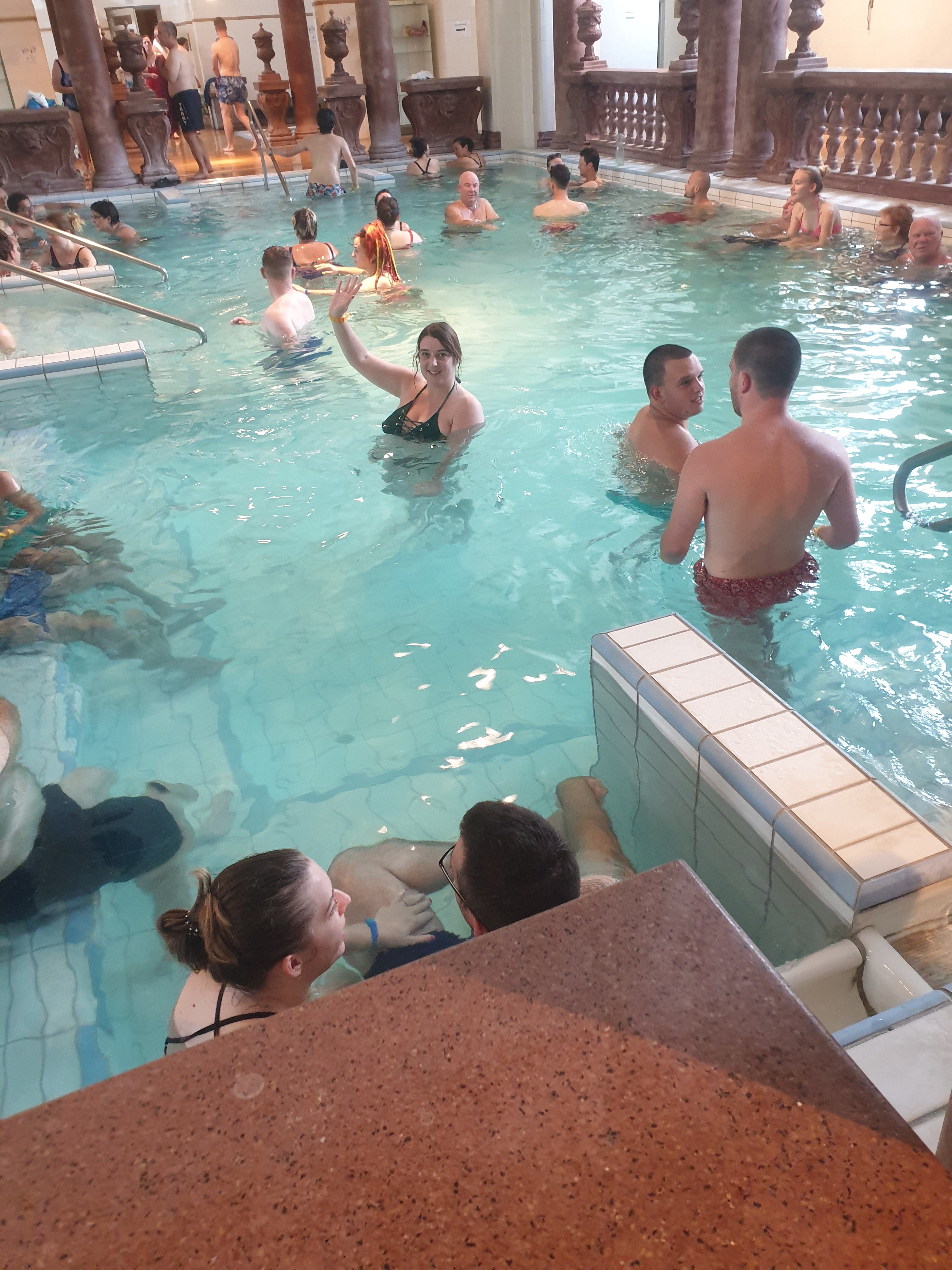 As the bus pulled up, I found myself squinting. What’s going on? Lo and behold, there it was – the sun. Finally luck was on our side as we passed a boating lake and Vajdahunyad Castle, admiring its architectural beauty, before getting into the action in the baths.