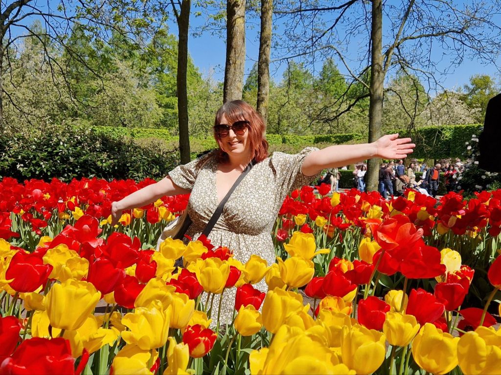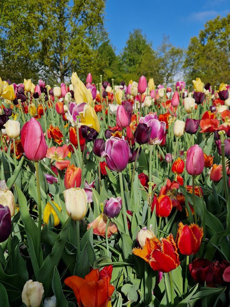 I could not have picked a better day for my visit to Keukenhof Gardens. Slouching around Amsterdam on Thursday in the endless, pouring rain, I’ll admit it was hard to stay positive at all times. But yesterday? Blue skies, sun, and even a chance to remove my coat!